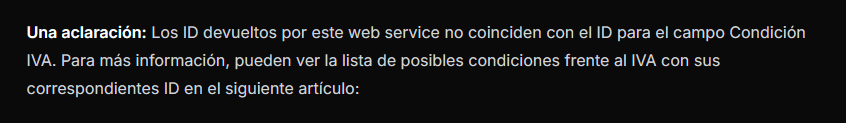 Buenas! estoy buscando cómo obtener la condición frente al IVA de un cuit. Me uní hace unos días y pude ver su blog para conseguir esta información (https://afipsdk.com/blog/padron-obtener-condicion-frente-al-iva-de-un-cuit/), la pude seguir perfecto y ahora estoy tratando de construir la lógica para distinguir, segun impuestos o propiedades relevantes, la condición frente al IVA. En el blog veo tres ejemplos (para resp. inscripto, monotributista e iva no alcanzado), ¿tendrán el mapeo para todos las condiciones frente al IVA? Muchas gracias, perdon por la molestia