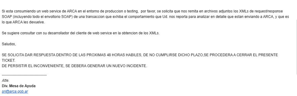 Hola! Como estan? Alguno estuvo jugando con el servicio ConsultarDeuda? me da error por todos lados. Usando el SDK hasta el dummie me devuelve "{"message":"Invalid XML\nError: Unexpected close tag\nLine: 10\nColumn: 7\nChar: >","statusCode":500}"