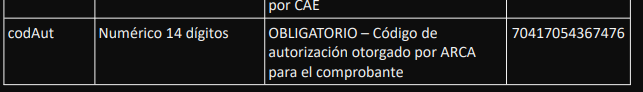 "FECAESolicitarResult": { "FeCabResp": { Cuit": cuitfacturador, "PtoVta": 2, "CbteTipo": 11, "FchProceso": "20250912122434", ** "CantReg": 1,** ** "Resultado": "A",** ** "Reproceso": "N"** }, "FeDetResp": { "FECAEDetResponse": [{ "Concepto": 2, "DocTipo": 80, "DocNro": cuitReceptor, "CbteDesde": 142, "CbteHasta": 142, "CbteFch": "20250912", ** "Resultado": "A",** "CAE": "75377272045152", "CAEFchVto": "20250922"