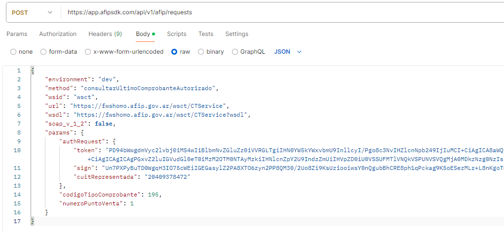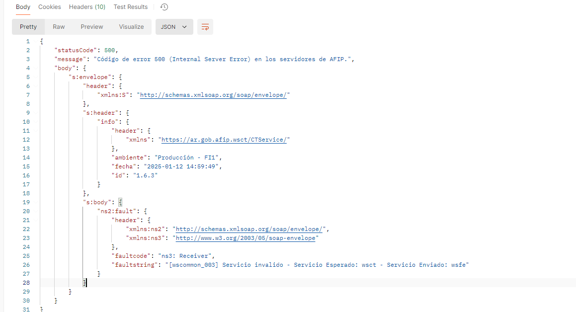Buenas, estoy intentando consultar el ultimo comprobante, tal cual es el ejemplo en la documentacion y me responde que se envia wsfe pero se espera wsct. en el request estoy enviendo wsct.