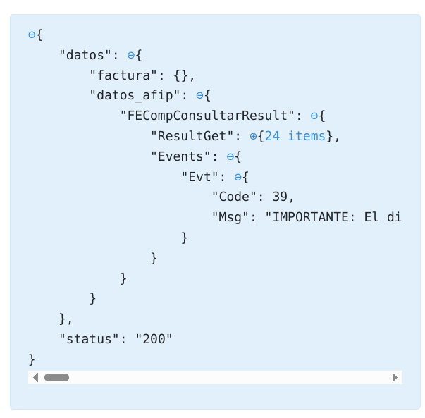 Hola. Tengo una duda. Existe alguna api de la cual pueda consultar las facturas? No quiero generarlas, solo consultarlas. Quería armar un código que escanee el qr de la factura y consuma los datos de la pagina de arca, pero antes queria saber si ya hay una API de la cual pueda consultar esa info. Gracias