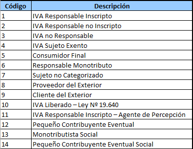 Estimo será eso? Cómo indico si es por ejemplo Responsable Inscripto, IVA exento, etc el receptor de la factura?