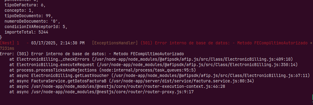 Buenas, una consulta, estoy teniendo un problema en produccion. Tengo todo funcionando ok pero al querer traer puntos de ventas me devuelve este error. El punto de venta ya se creo en la pagina de Arca. Estoy usando Nest por si tiene algo que ver pero no creo